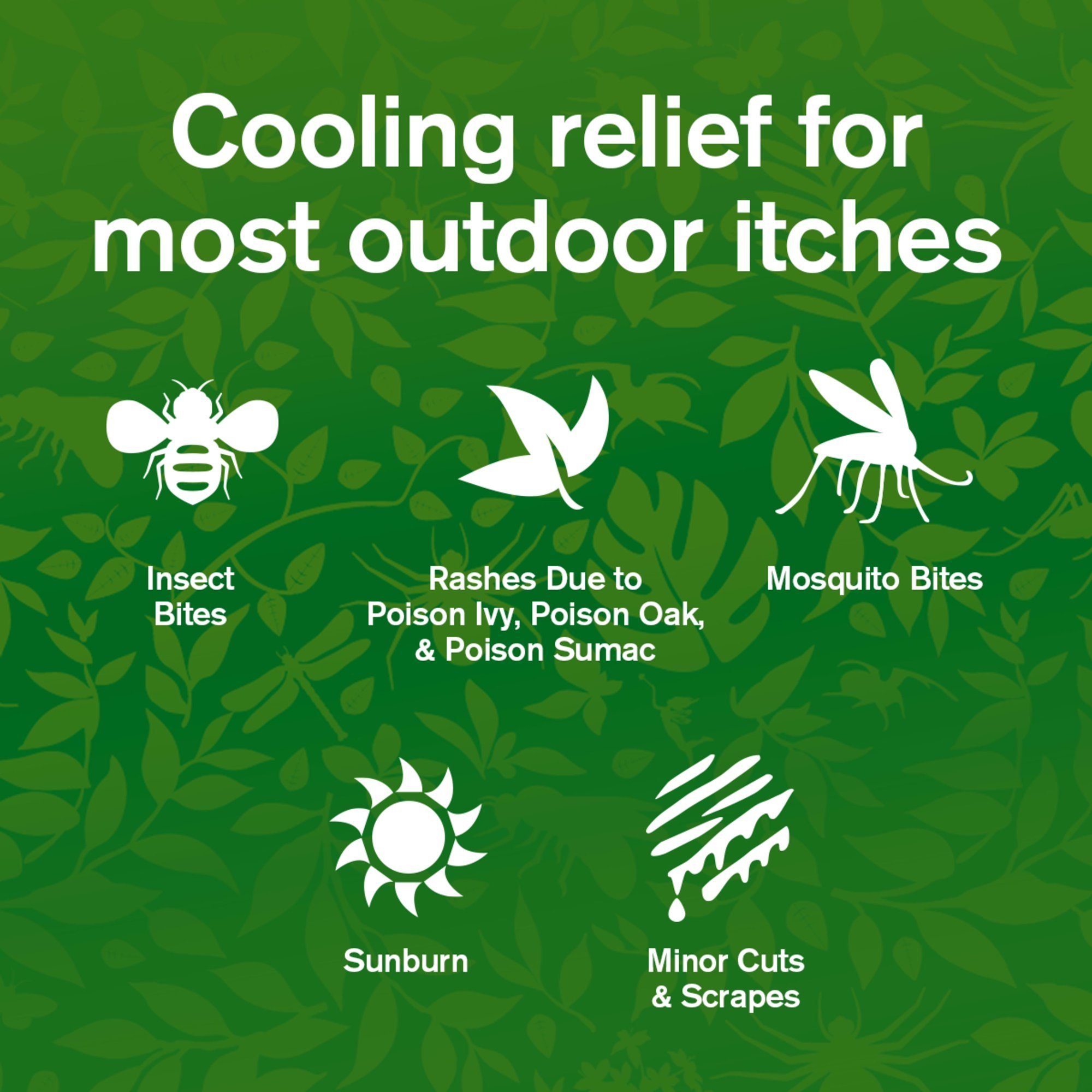 The topical gel provides fast cooling relief from skin pain & itching from most outdoor itches